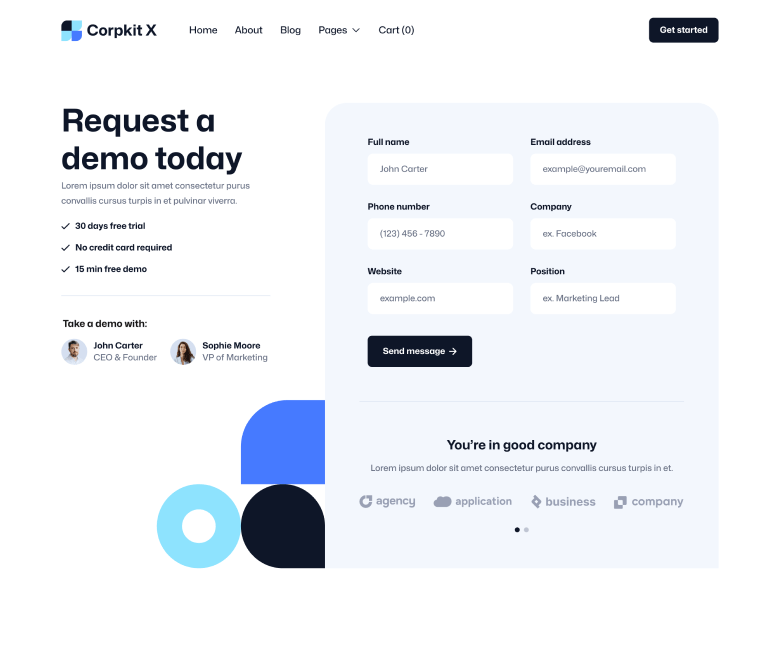 With a total of 3 different headers and footers, you can easily customize the Corpkit X Webflow Template to fit your company needs and requirements.